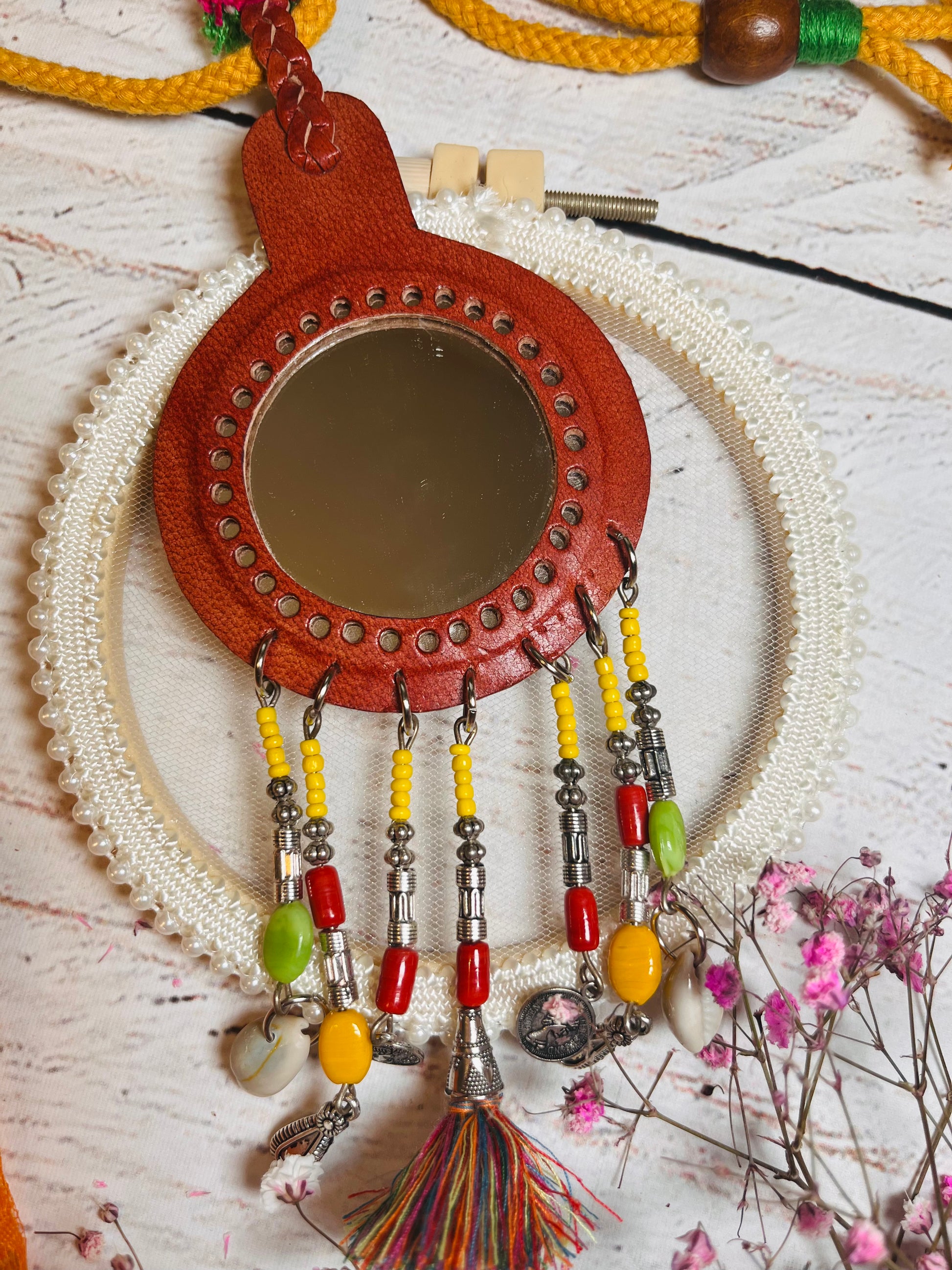 Pure Leather and mirror work Bhujodi Boho Necklace( Brown & yellow)